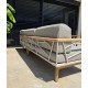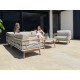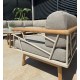 Das Gestell aus hochwertigem pulverbeschichtetem Edelstahl in light taupe überzeugt durch Leichtigkeit, Stabilität und Wetterbeständigkeit. Armlehnen und Beine aus massivem Teakholz setzen edle, natürliche Akzente und unterstreichen den hochwertigen Charakter der Lounge.